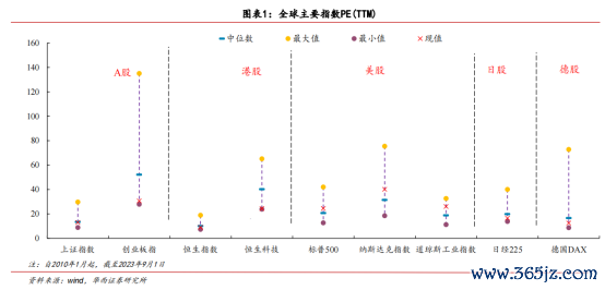 首先比较一下中美日德股市,9月1日当天几个重要指数估值的绝对水平: