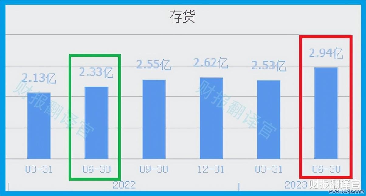 2022年第二季度,该企业的存货为2.33亿元。到了2023年第二季度,这家公司的存货就达到了2.94亿元,同比增长了26%。